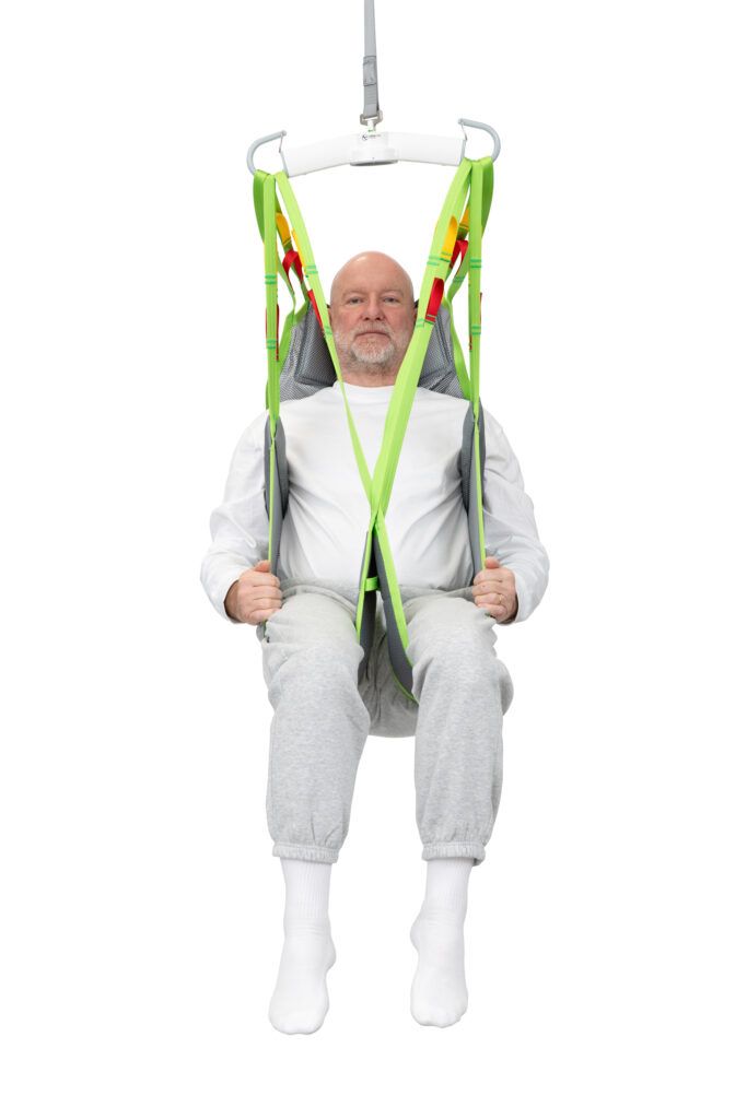 The toileting sling is available in a fast drying and soft polyester net fabric.